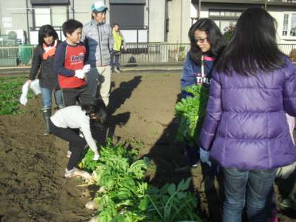 近くの農園で大蔵大根を抜きました。