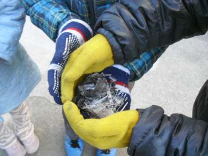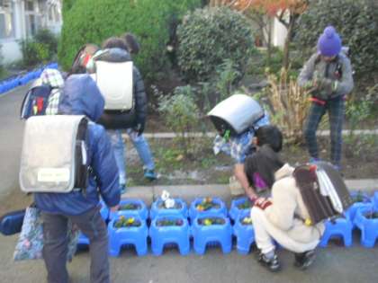 霜柱を手にした子どもたちがうれしそうに登校してきます。