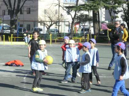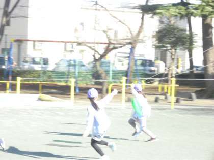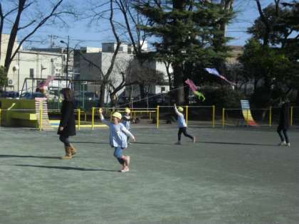 校庭では凧上げとドッジボールを行っています。