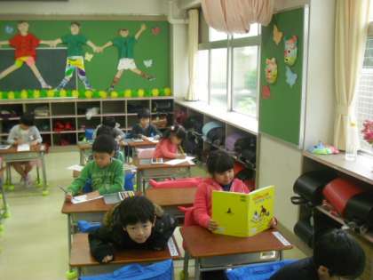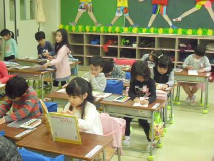2枚書き終えたお友だちは読書をしています。