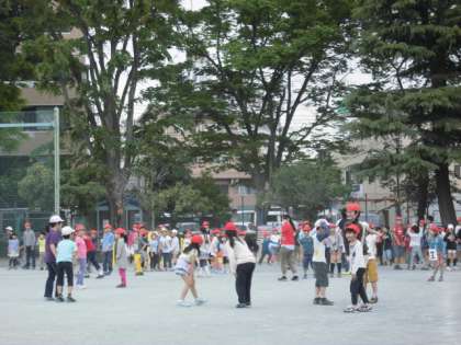 低学年と高学年でペアになって、スキップで追いかけたり逃げ回ったりするおにごっこで盛り上がりました。
