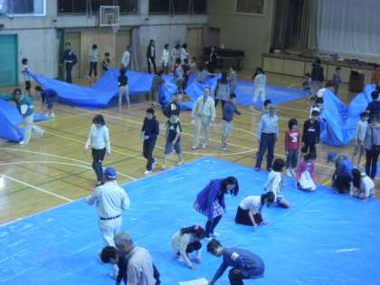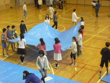 6年生は避難所設営の手伝いを体験しました。