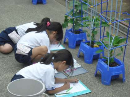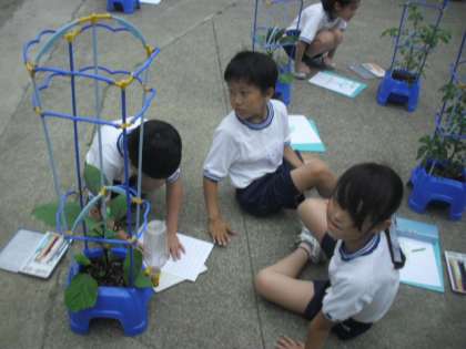 ナス、ピーマン、枝豆、トマト、キュウリ・・・自分の好きな野菜を選びました。