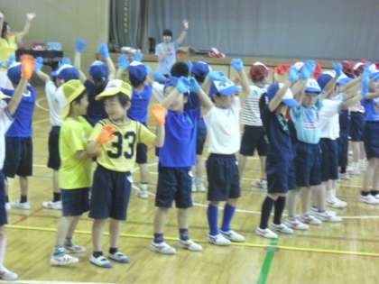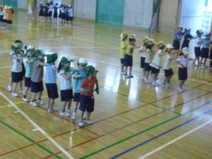 踊っているとキャップが落ちてきて前が見えなくなる子もいます。