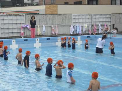水慣れをして短時間で上がりましたが、楽しくプールに親しむことができました。