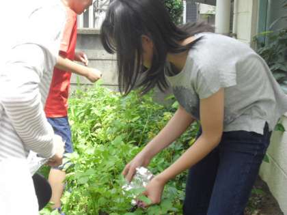 近づいてみたら、理科の光合成の実験をしているところでした。