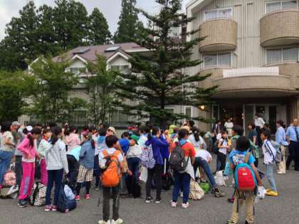 宿舎に到着しました。大雨にふられましたが無事開園式をすませました。