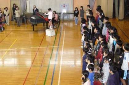 代表委員による始めの言葉、校長あいさつのあと、全員合唱「すてきな友だち」でした。