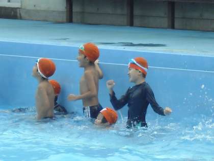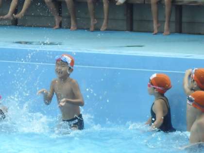 ゆく夏を惜しむように水の感触を楽しんでいました。