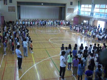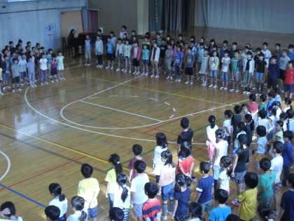 今日の音楽朝会は「夏の日の贈り物」を歌いました。