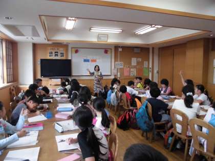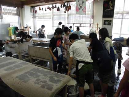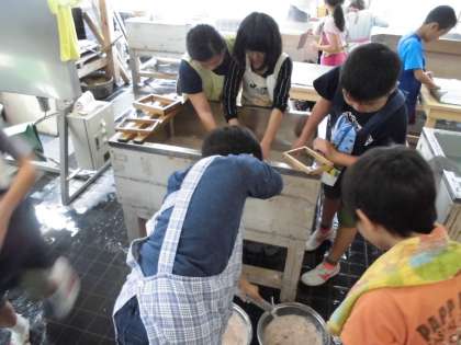 山崎小学校の伝統工芸室で紙漉き体験をしました。