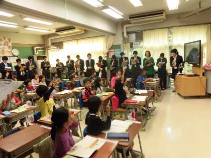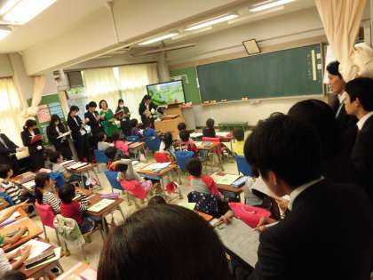 今日は研究授業があり、教室にたくさんのお客様が来ました。