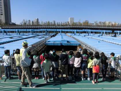 事前の学習でなにを見学してきたいのか、目的をはっきりさせていた子どもたちは、バスのガイドさんの話も施設の係の方の話も、よく聞いていました。