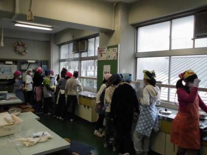 今日は一段と寒い一日となりましたが、ご飯の湯気が立ちこめた家庭科室は、ほんのり暖かく感じました。