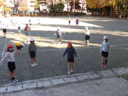 縄跳びを練習しています。