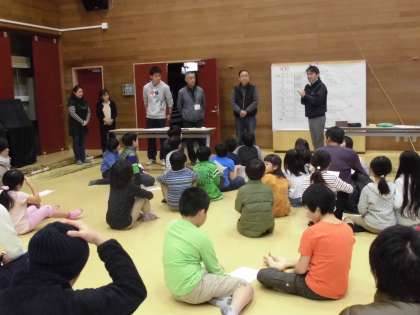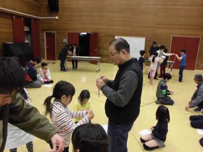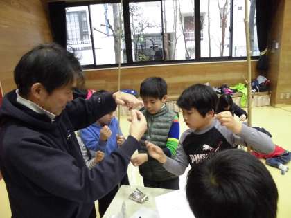 「ニジマスプロジェクトチーム」の地域の方や児童館の方々に、教えてもらいながら、釣り竿を作りました。