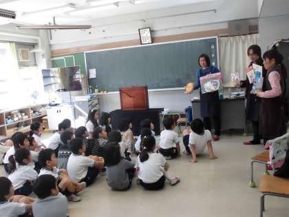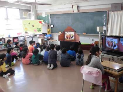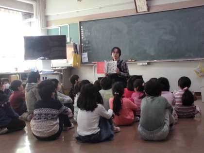 2年生の子どもたちは、お話を聞くのが大好きで、身を乗り出して聞いていました。