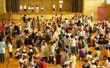 「サラダを作ろうよ」「ボールだって持ってるし」「フォークだって持ってるもん」という掛け声を集会委員が言い、その後を全校児童が言います。その後、集会委員が「ト・マ・ト」と言ったら、文字の数だけ3人が集まります。