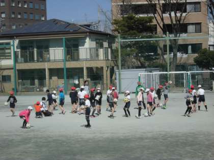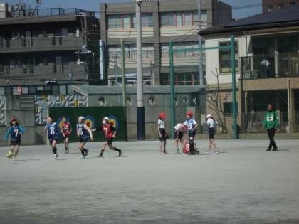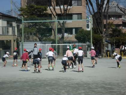 ペアでパスの練習をしたり、チームに分かれて試合をしたりしました。