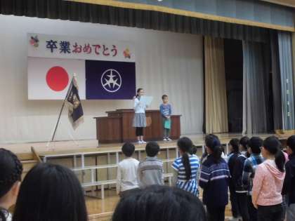 今日は平成27年度の修了式です。各学級の代表児童が修了証書を受け取りました。