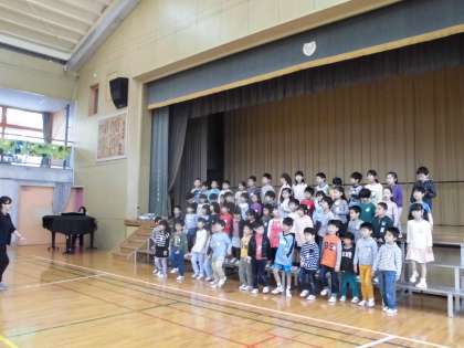今週の木曜日に予定されている「1年生を迎える会」に向けて、みんなで「さんぽ」を歌いました。
