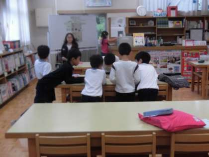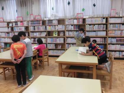 学校図書館にはたくさんの子どもたちが集まり、