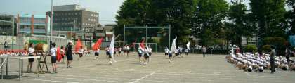 応援団は、毎朝練習をしています。紅組・白組に分かれ、みんなで力一杯応援ができました。