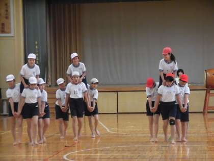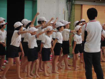 雨のため体育館で行いました。
