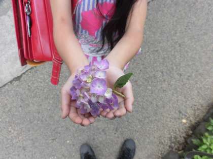 登校時に2年生の女の子がアジサイを拾ってきました。