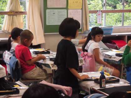 墨汁の香りが教室に漂い、