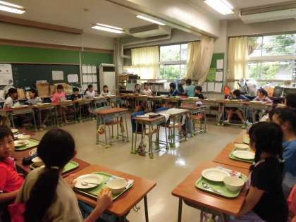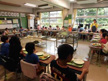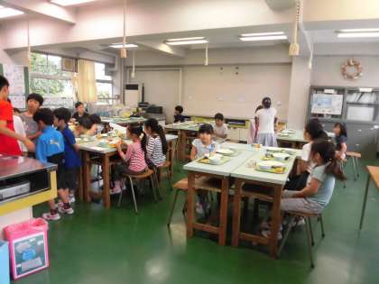 全校オリエンテーリング大会のあとは、笹の子班で給食を食べました。