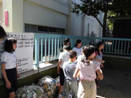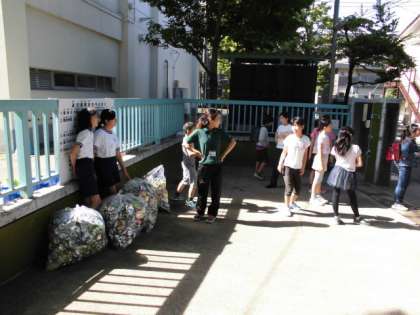 エコグリーン委員会が登校時間にアルミ缶回収をおこなっています。