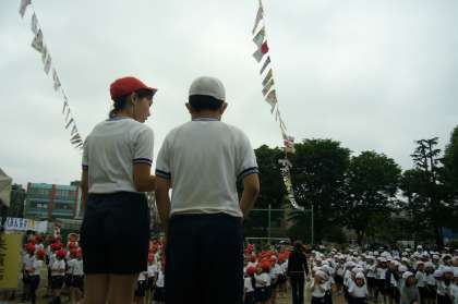 閉会式の頃になると雨が降り始めましたが、最後まで係や代表の子どもたち、そして閉会式に整列している全員は、立派な態度で閉会式にのぞみ、無事終了しました。