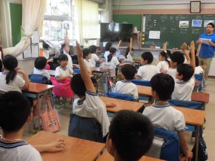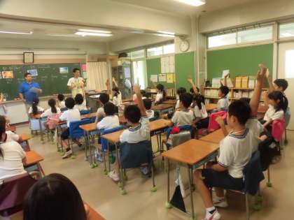 繰り返し大きく声に出し、全員が参加する工夫をします。