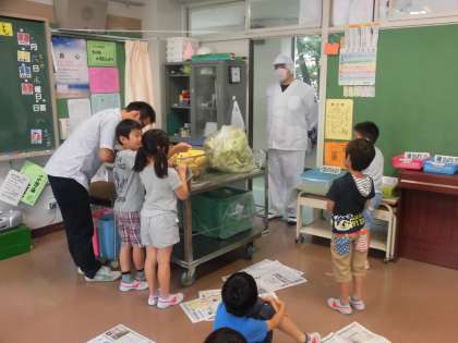 自分たちで皮をむいたトウモロコシは今日の給食の食材に利用します。