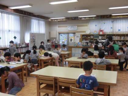 中休みの学校図書館です。