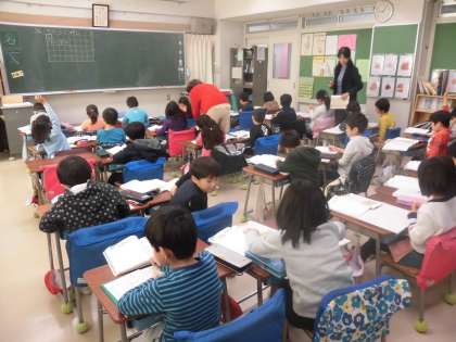 教室の後ろからそっと入り、学習の様子を参観しました。