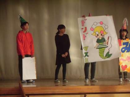 今日の朝会で、代表委員会から記念キャラクター募集のお知らせがありました。