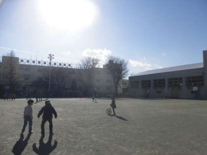 たくさんの子どもたちが校庭に出て遊んでいます。