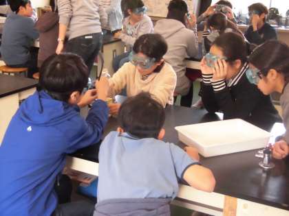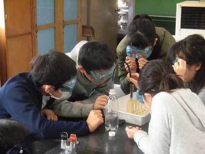 実験では、安瀬多性を確保するためゴーグルを着用します。