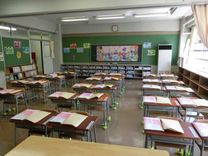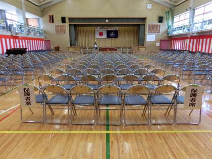 在校生代表の6年生とともに入場した新1年生88名。来賓の皆様、保護者の皆様、教職員に見守られながら、立派な姿勢で式に参加し、笹原小学校の一員となりました。また、6年生による児童代表の言葉を聞いたり、2年生による歓迎の出し物を観たりし、学校生活への期待に胸を膨らませているようでした。そして式の後、学級担任からの話があり、記念写真撮影を行いました。