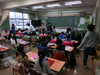 朝の時間には、2年生以上は「朝読書」に取り組み、一人ひとりが静かに本に親しむ姿が印象的でした。1年生の各教室では、6年生がお世話しながら、朝の教室での支度を担任の先生とともに確認しながら丁寧に行っていました。