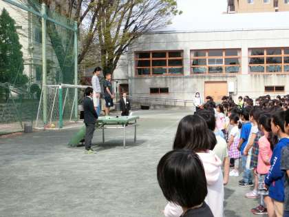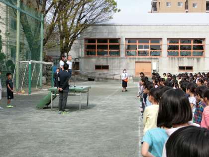 4/17 児童朝会を校庭で行いました!