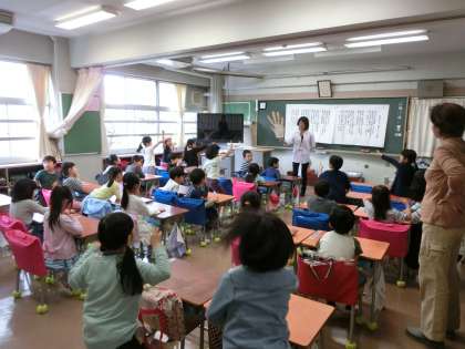 子どもたちも、朝の「なかよしタイム」で歌を歌ったり、お話しポケットのみなさんによる「読み聞かせ」を聞いたりしながら、心をほぐすとともに、友達と仲よく生活をスタートさせる活動に、みんなと一緒に取り組んでいました。たくさんの笑顔とたくさんの友達同士のかかわり合いが見られ、楽しく過ごしていました。
