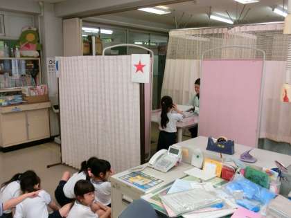 今日と明後日の予定で、1・2・3・5年生の聴力検査を行っています。