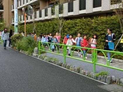 班長さんは、班の旗を持ち、下級生に声をかけながら列をしっかりとつくって班のメンバーをリードし大活躍でした。