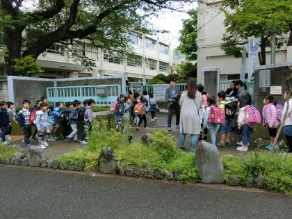 それぞれの地区班の集合場所に、決められた集合時間に集まり、保護者の皆様に見守られながら、地区班の班長さんと副班長さんが中心となり、人数の確認や歩き方などを確認し、安全に気を付けながら登校してきました。