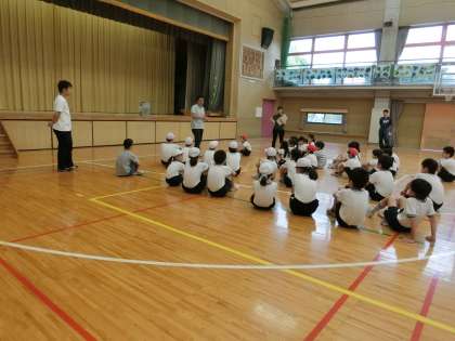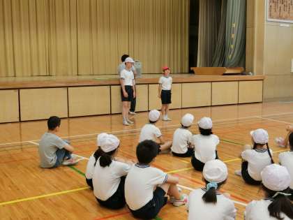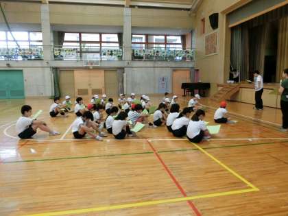 体育館に集まった子どもたちは、顔合わせを行い、白組・紅組の団長の自己紹介、応援歌の検討など、意欲的な活動がスタートしました。
