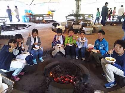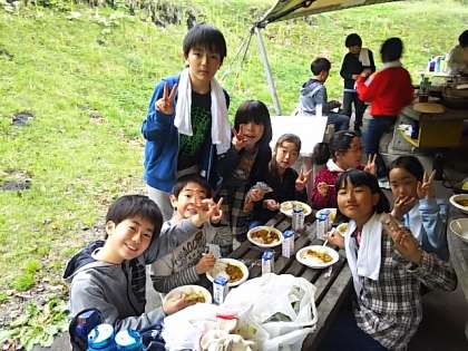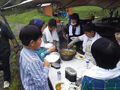 どの班もほぼ同時に食べ始めました。最高のカレーライスです。