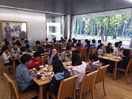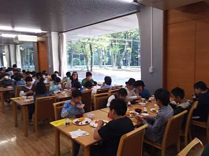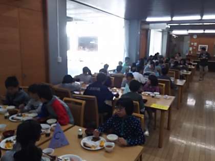 朝食の時間になりました。宿舎の食堂での初めての食事です。会話も弾み、楽しいひとときです。